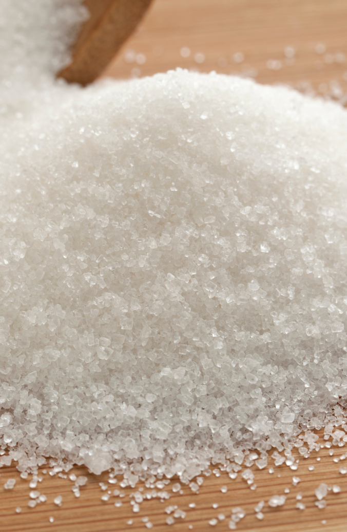 White sugar is sugar which has been refined and washed so that it has a white appearance and no molasses flavour. It contains 99.9% sucrose.